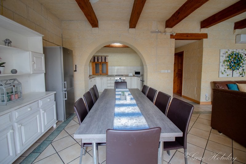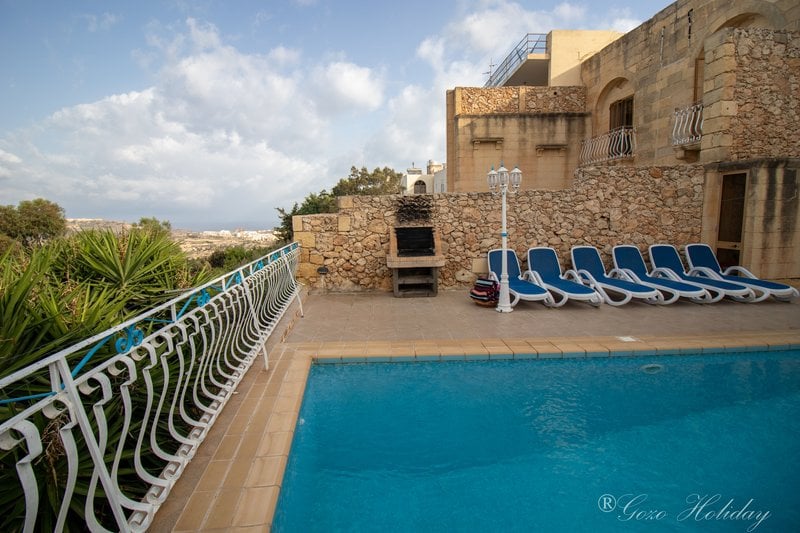 Cena pobytu w 12 lub 8 osobowym domu z basenem w rejonie Xagħra to koszt ok 200 EUR na osobę za tydzień, wyżywienie we własnym zakresie.