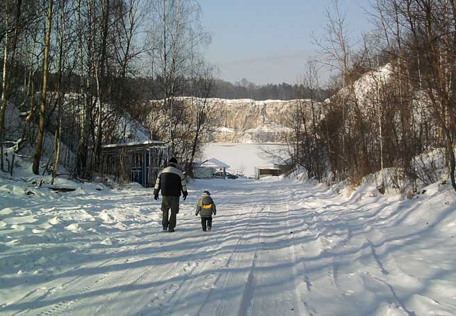 Prawie caly akwen jest pokryty lodem Droga zjazdowa jest w dobrym stanie (jest snieg, nie ma lodu) Mimo niedzieli byl tylko jeden nurek...