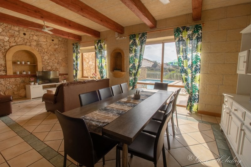 Cena pobytu w 12 lub 8 osobowym domu z basenem w rejonie Xagħra to koszt ok 200 EUR na osobę za tydzień, wyżywienie we własnym zakresie.